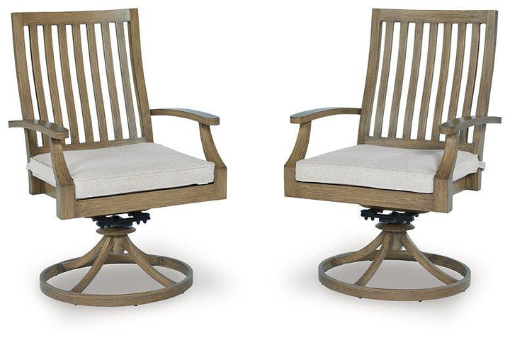 Experience the perfect combination of durability and style with this outdoor swivel rocker chair. Enhanced by a sumptuously soft cushion wrapped in high-performing, low-maintenance Nuvella+™ fabric, it's designed to provide you with years of enjoyment. This delightful addition to your outdoor space creates an oasis where comfort and beauty thrive.